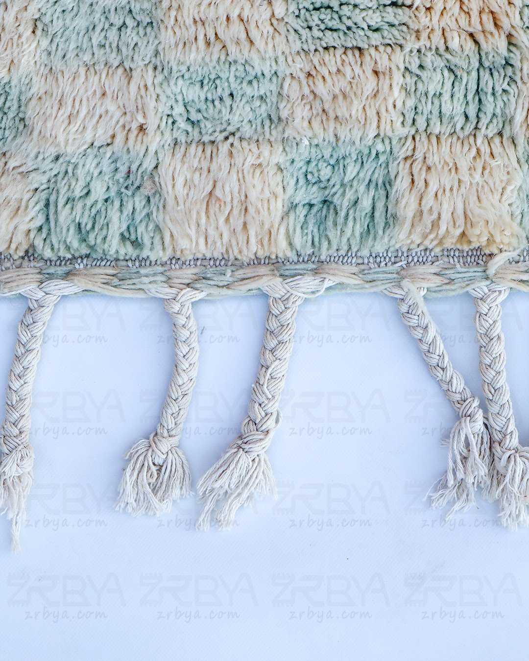 الجودة العالية: تُصنع زربية بني وراين من صوف الغنم الطبيعي 100٪، مما يمنحها متانة عالية وقدرة على تحمل الاستخدام الكثيف لسنوات طويلة. كما أن الصوف يُعرف بدفئه ونعومته، مما يجعل هذه الزربية مثالية للأرضيات.